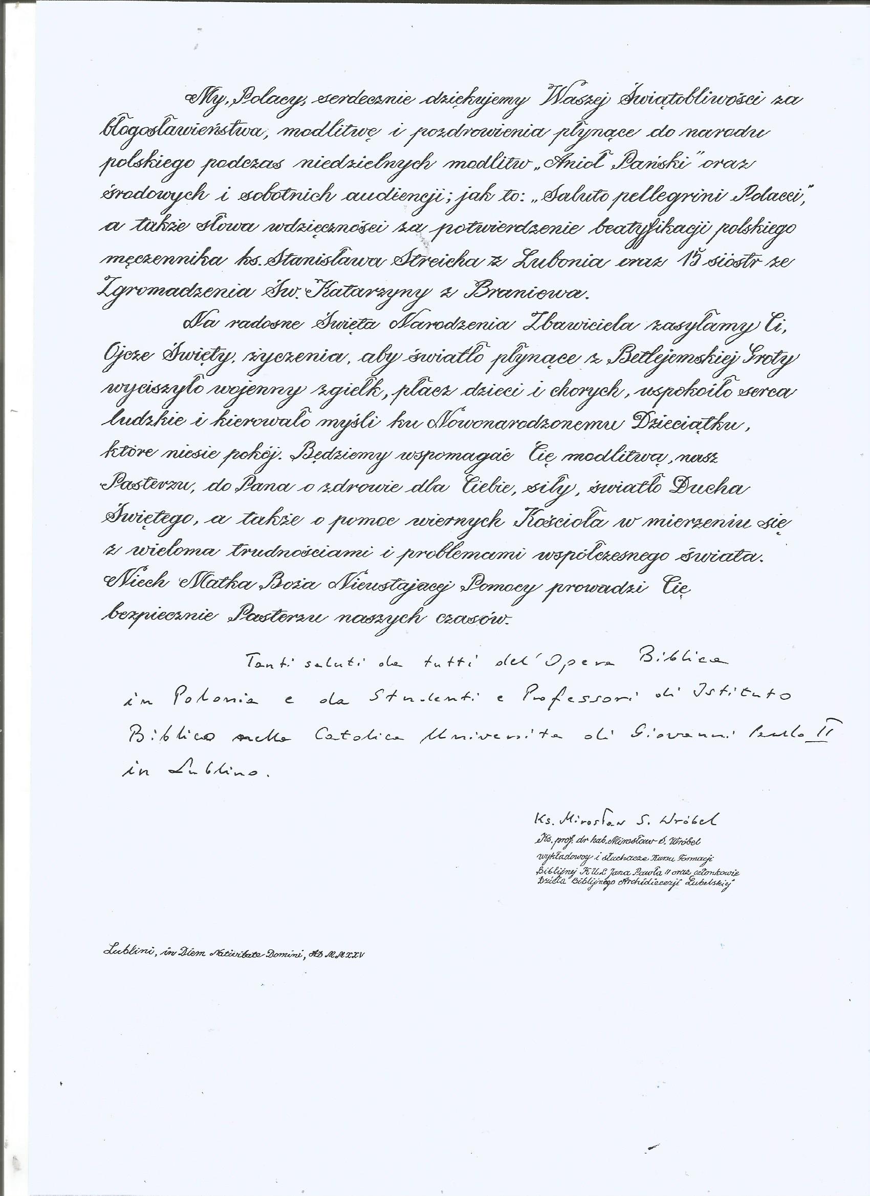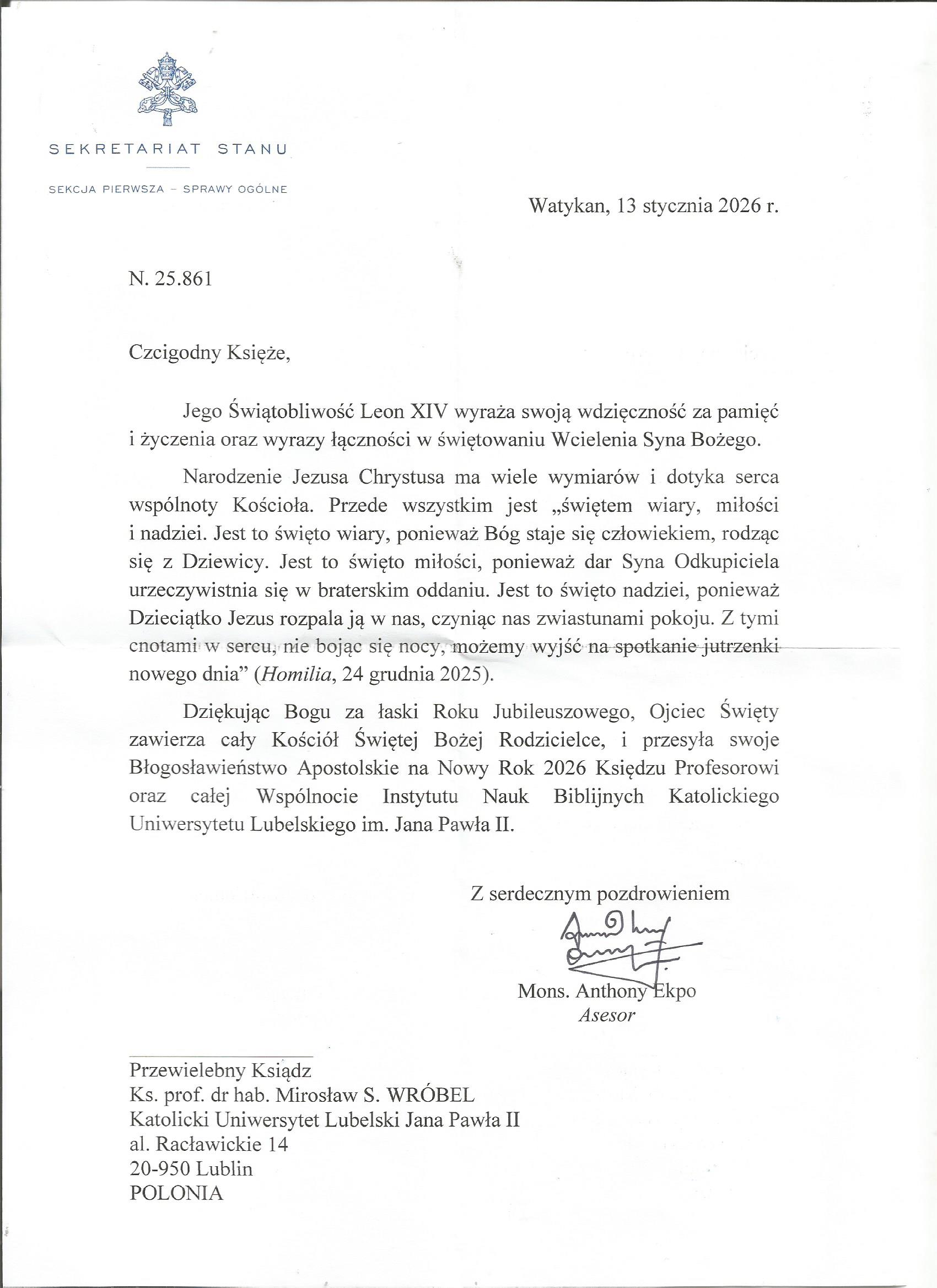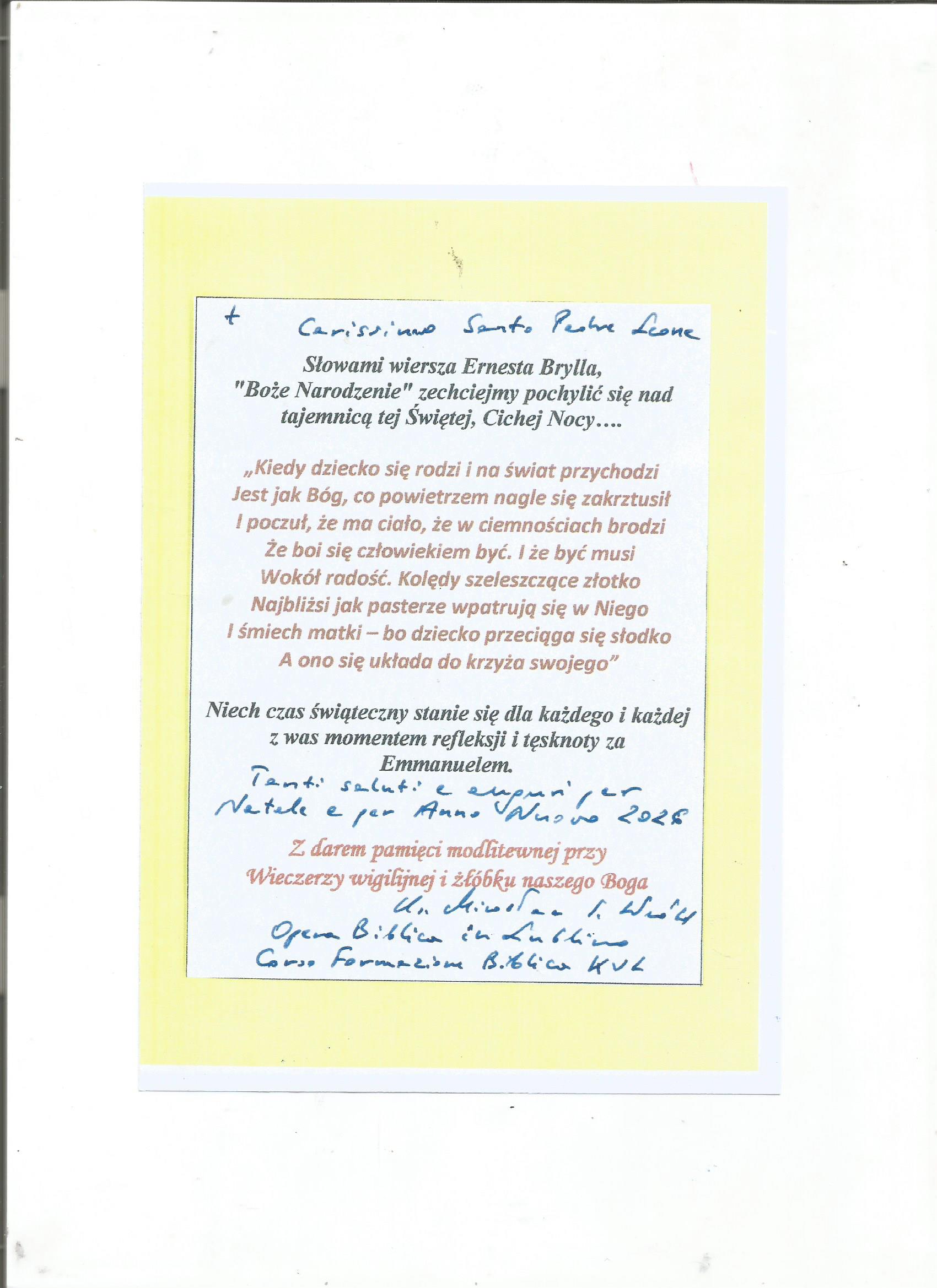Listy papieskie Boże Narodzenie 2025