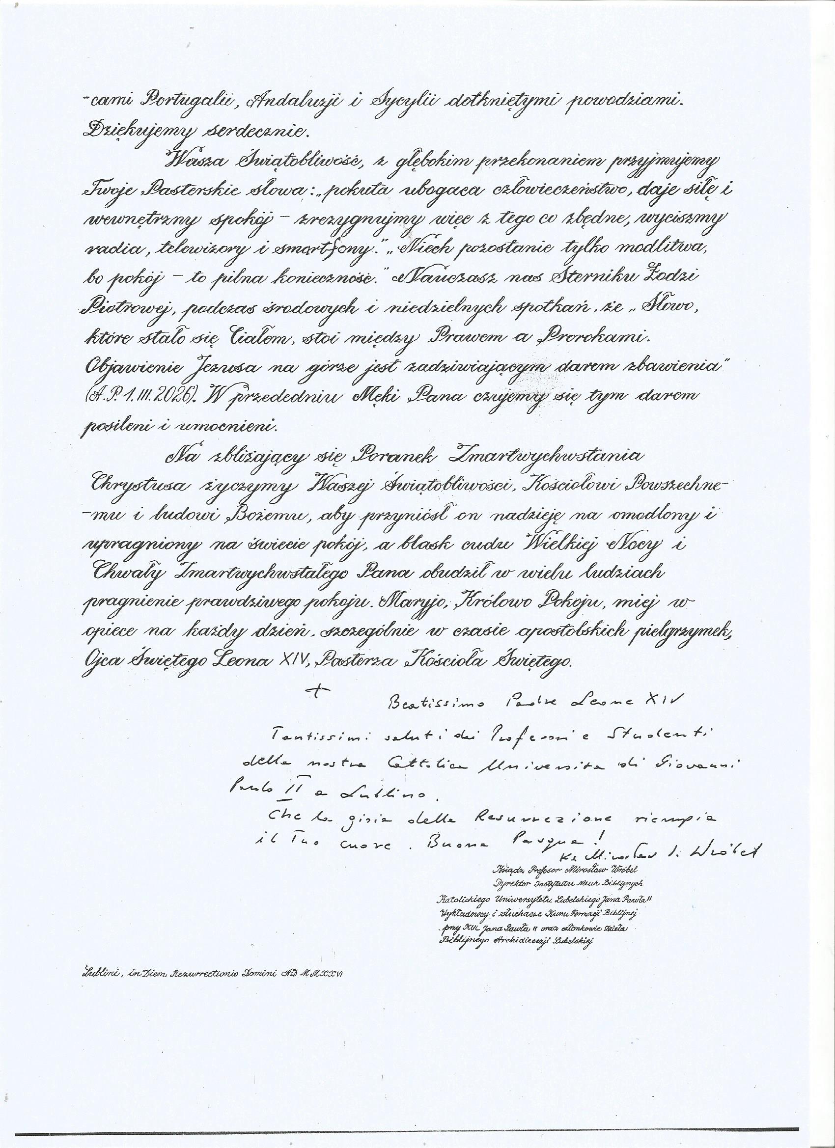 Listy papieskie – Wielkanoc 2026