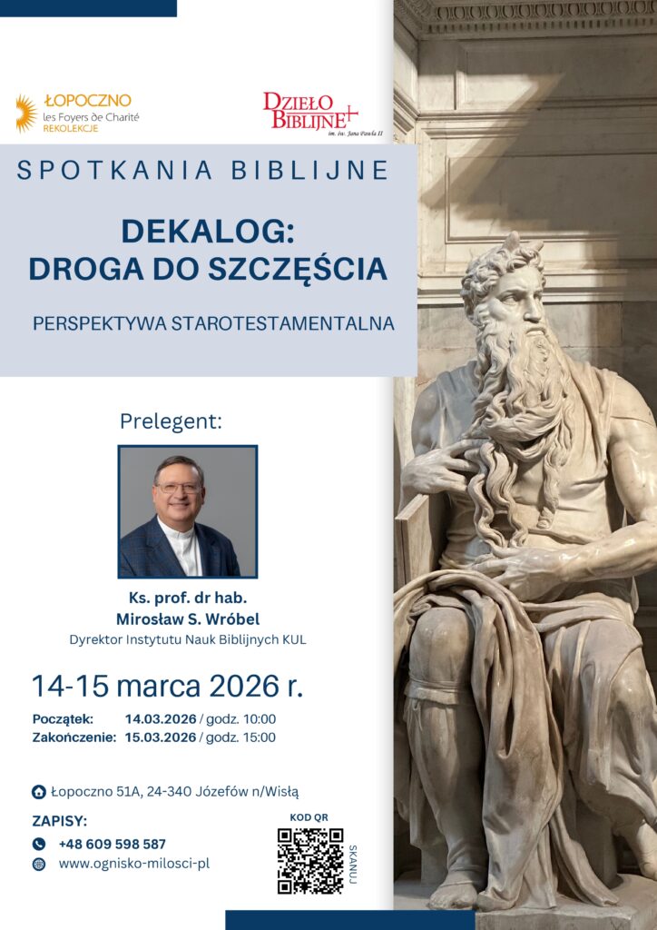 W dniach 15-16 listopada 2025 r. Ognisko Światła i Miłości w Łopocznie i Dzieło Biblijne im. Jana Pawła II Archidiecezji Lubelskiej organizuje spotkanie biblijne pt. „Orędzie nadziei w nauczaniu Jezusa”. Prowadzi: ks. prof. Mirosław Stanisław Wróbel.