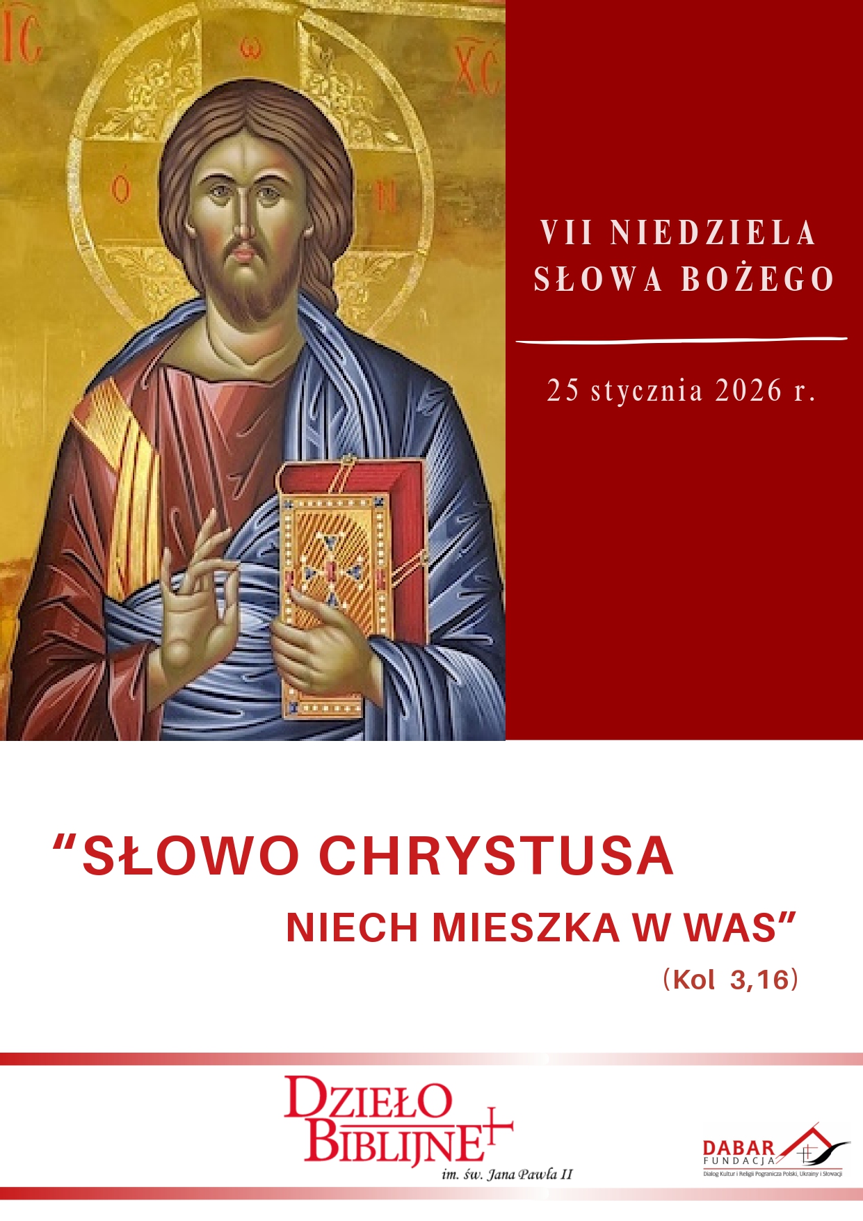 W niedzielę 25 stycznia 2025 r. Kościół będzie obchodził VII Niedzielę Słowa Bożego, której celem jest ponowne odkrywanie i pogłębianie znaczenia Biblii w życiu Kościoła i w osobistym życiu człowieka. Hasłem tegorocznej Niedzieli Słowa Bożego jest „Słowo Chrystusa niech mieszka w was” (Kol 3,16).